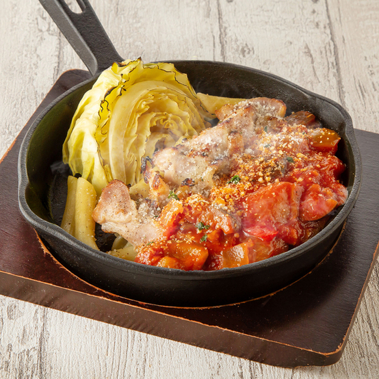 ボリュームのあるメインディッシュがほしいときには「チキンのガーリックソテー ごろごろ野菜のトマトソース」がおすすめです。芳醇なニンニクの風味がトマトソースとベストマッチした一品。チキンの旨みとも絶妙に合いますよ。大きなカットキャベツは箸休めとしてもお楽しみいただけます。